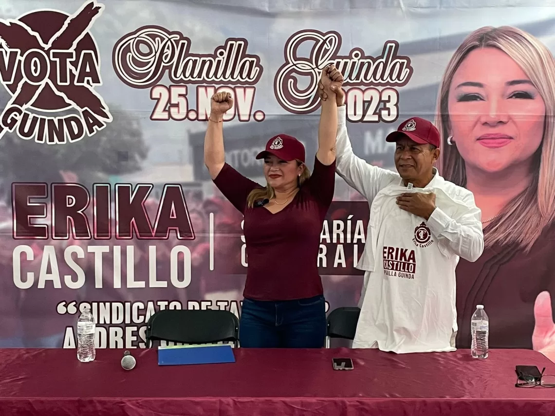 “Hoy me queda claro que el sindicato ha aprendido la lección, me queda claro que en la preferencia de colores está la Guinda y que sin duda, Erika si sigue trabajando como está y con nuestro granito de arena, va a ganar sin duda el 25 de noviembre. Les invitamos a que hoy nos demos la oportunidad de un verdadero cambio,” declaró Alejandro Peralta.