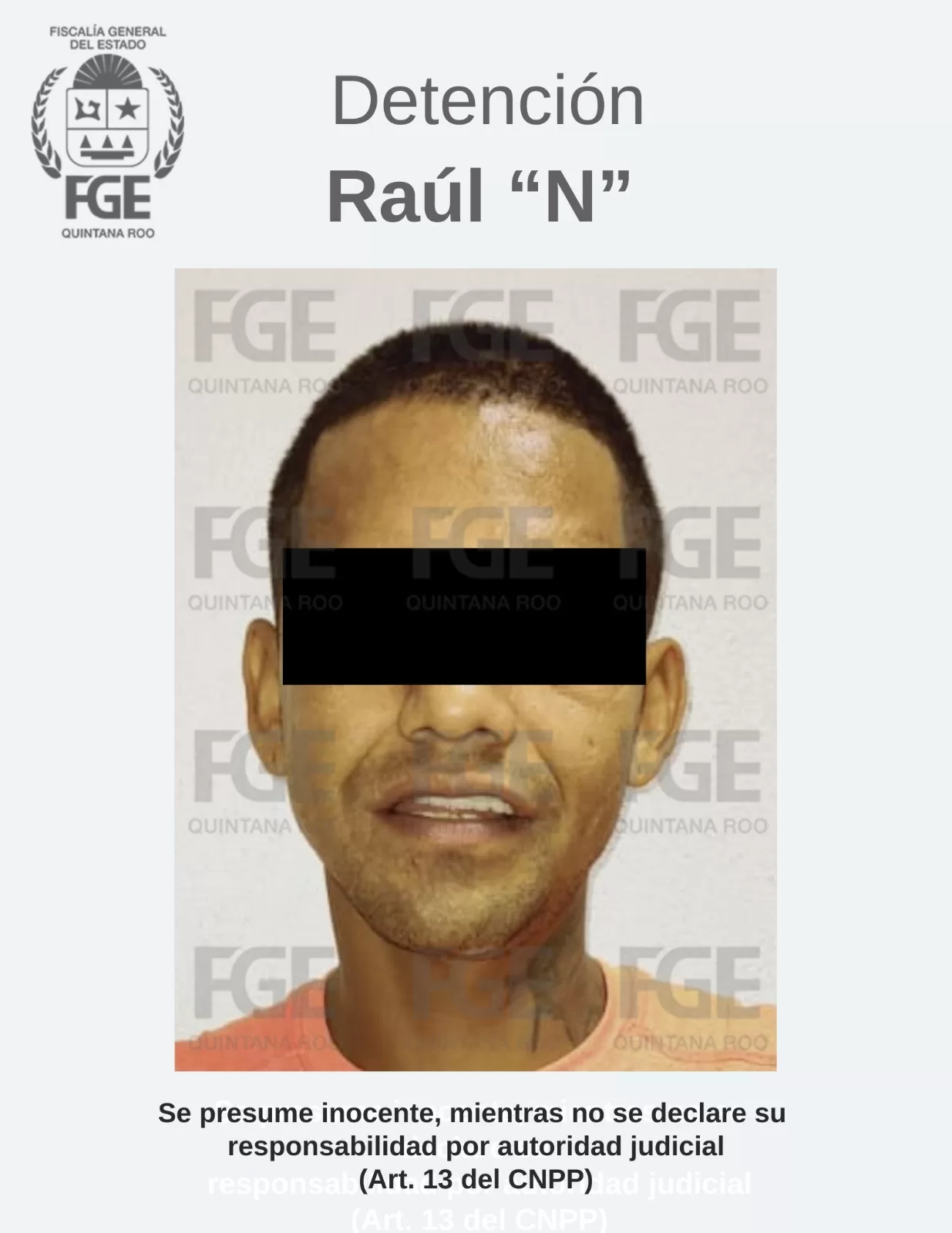 Luego de la denuncia hecha ante esta Representación Social, el señalado fue detenido por elementos de la Policía de Investigación cuando caminaba por la calle Zapote entre Ceiba y Caoba de la colonia Villamar. Raúl “N” fue puesto a disposición de la autoridad que lo requirió, la cual, en el término constitucional previsto, definirá su situación jurídica.