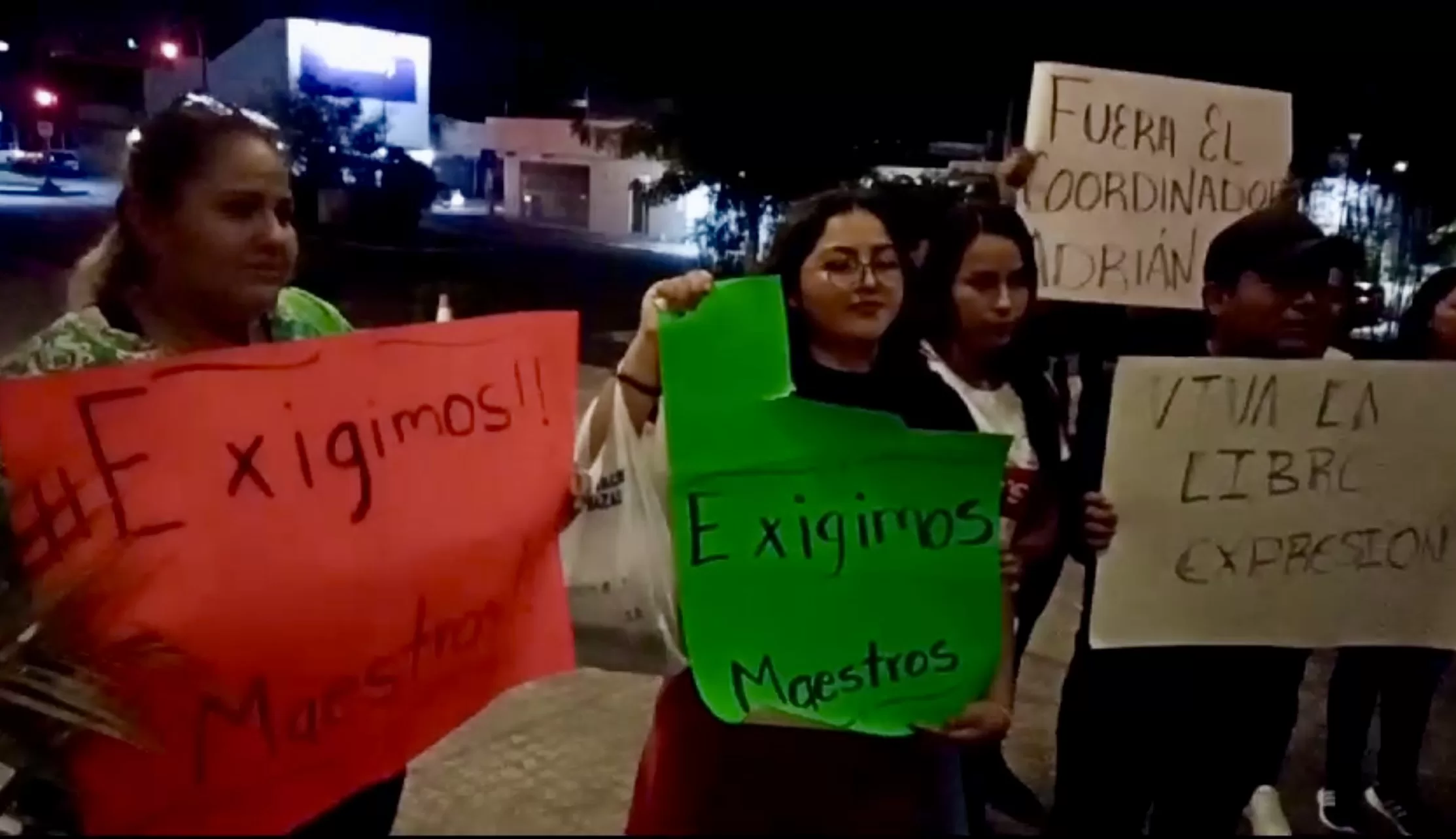 Además, durante la protesta, los estudiantes hicieron una denuncia pública contra el encargado del plantel, Adrián Ake Gómez, por tolerar que una de las maestras avise a los alumnos.