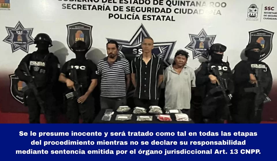 Cancún, 30 de enero (Infoqroo).- Agentes de la Secretaría de Seguridad Ciudadana, realizaban recorridos de vigilancia en la calle Hacienda Villa Mar, con dirección a la Avenida Leona Vicario, a la altura de la región 208, donde sorprendieron a tres individuos que se repartían bolsitas con marihuana.