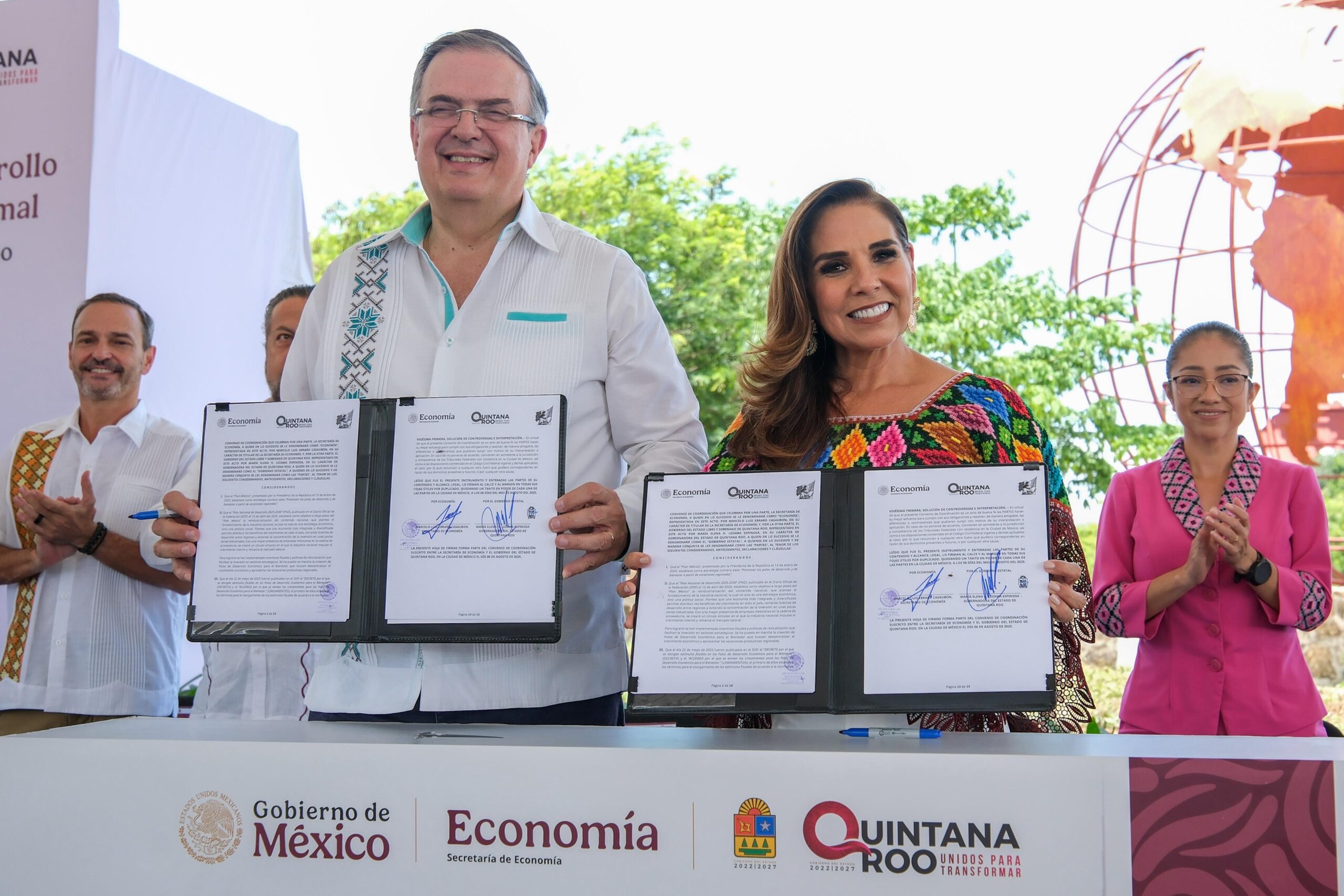Chetumal.- En un día histórico para esta capital, la gobernadora Mara Lezama Espinosa y el secretario de Economía Marcelo Ebrard Casaubon firmaron el Convenio de Coordinación para la Implementación, Desarrollo y Operación del Polo de Desarrollo Económico para el Bienestar.