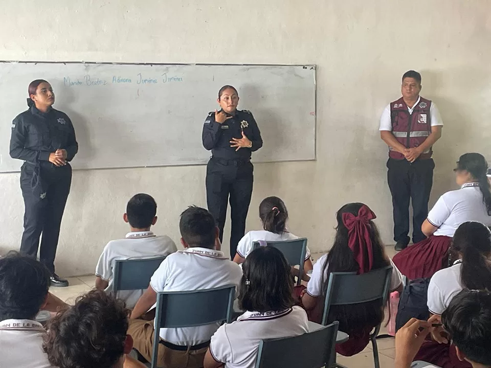 Cancún, 29 de agosto (Infoqroo).- La Secretaría de Seguridad Ciudadana, por conducto del área de Vinculación con Instancias, llevó a cabo el programa “Policía en tu Escuela”, en la Secundaria General 30 “Juan de la Barrera”, ubicada en la supermanzana 233 del municipio de Benito Juárez.