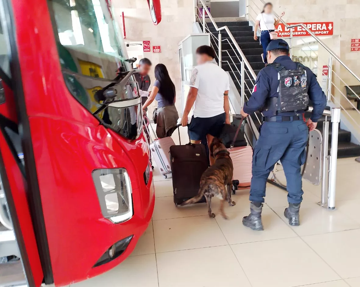 De acuerdo con un boletín, estos recorridos pedestres continuarán con el apoyo de los elementos caninos en las terminales de autobuses y marítimas, donde, mediante inspecciones al azar podrán identificar si alguna persona pudiera estar transportando algún objeto o sustancia ilegal que represente un riesgo para la seguridad de la ciudadanía.