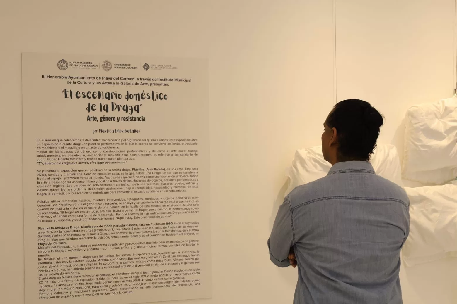 Playa del Carmen, Quintana Roo, 7 de junio de 2025.- En este mes del orgullo LGBTTTIQ+, Alex Batalla conocido como “Plástika”, exhibe en la Galería de Arte su “Escenario doméstico de la Draga”, que estará durante todo junio en esta sede cultural, de manera gratuita.