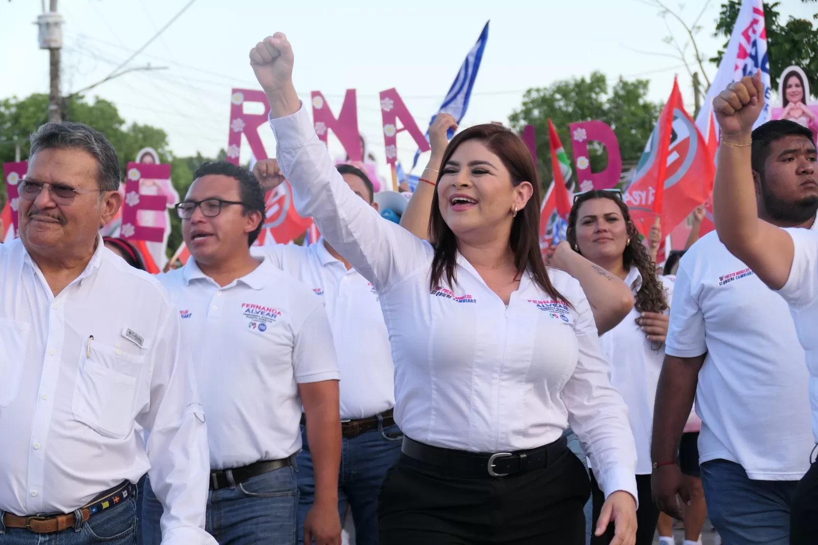 Acompañada por Saydi Anduze, candidata a diputada; Sayuri Cetina, Pedro Flota y Miguel Zetina, lideres del PRI; Richard Aguilar, del PAN, así como la decano magisterial Blanca Hernández; Alvear Palacios agradeció a los de su planilla: Rubén, Rosy, Willy, Bianca, Alexis, Marian, Limberg, Leouvin, Gustavo, Roberto, Mishel, Abigail, Enrique, Yvone y Sharon, “y a todos quienes caminaron juntos escuchando, comprendiendo y sintiendo el reclamo de justicia de las familias”.