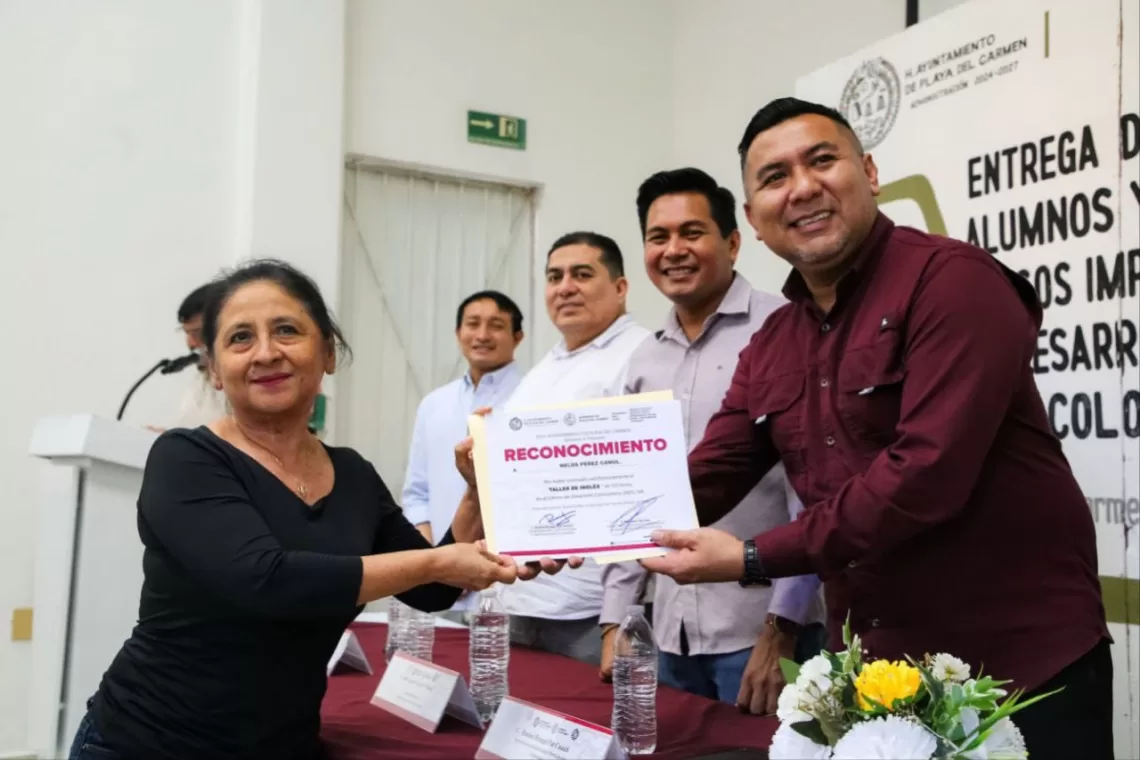 Asimismo, subrayó que la entrega de reconocimientos marca la conclusión de un periodo de capacitación y refrenda el compromiso del Ayuntamiento de Playa del Carmen con la continuidad de estos programas durante el año 2026, los cuales benefician anualmente a un promedio de 400 personas.