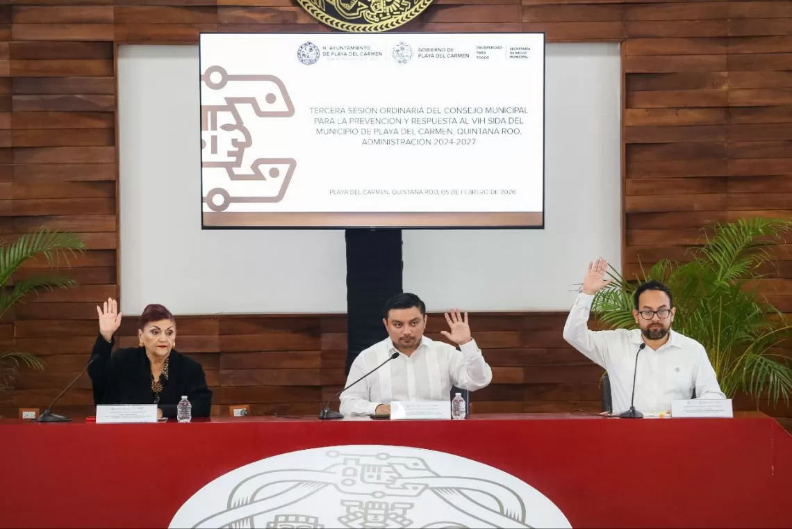 Playa del Carmen, Quintana Roo, 5 de febrero de 2026.— El gobierno municipal, que encabeza la presidenta municipal Estefanía Mercado, llevó a cabo la Tercera Sesión Ordinaria del Consejo Municipal de Prevención y Respuesta al VIH/Sida, con el objetivo de fortalecer la respuesta sanitaria, impulsando acciones enfocadas en la educación y sensibilización de la población.