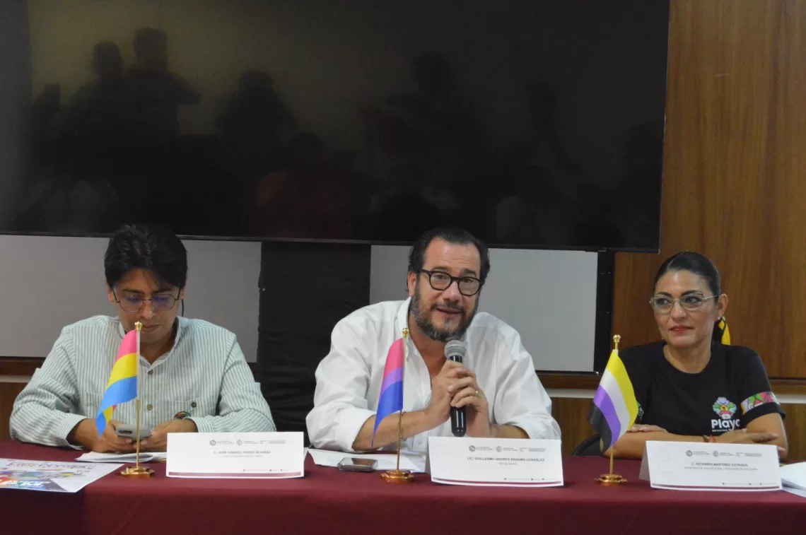 En representación de la alcaldesa, el oficial mayor del Ayuntamiento, Guillermo Brahms González, encabezó la conferencia de prensa donde afirmó que “Playa del Carmen es un destino inclusivo, libre y comprometido con la igualdad”.