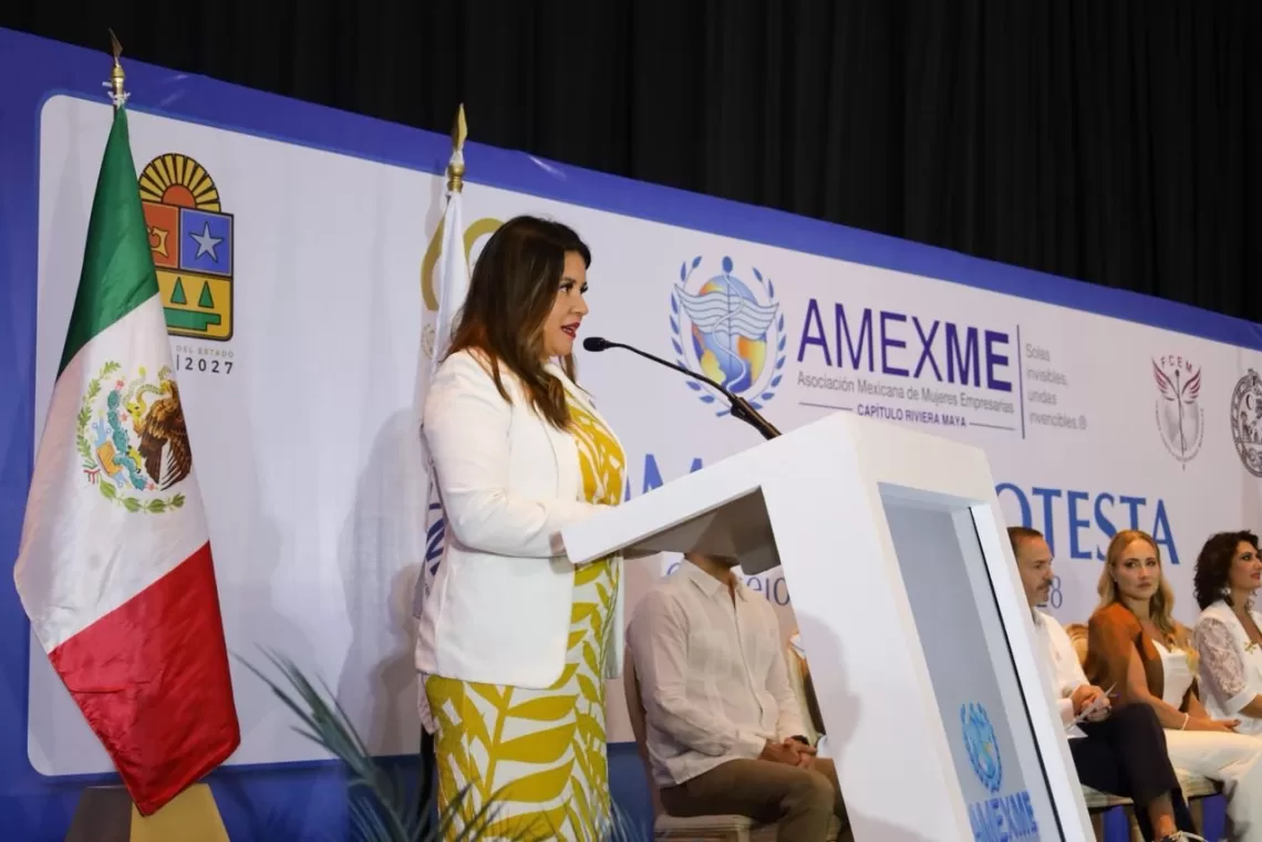 Durante la ceremonia, que contó con la presencia de la presidenta nacional de AMEXME, Ivett Bonifaz Famania; el secretario de Desarrollo Económico de Quintana Roo, Paúl Carillo, en representación de la gobernadora Mara Lezama; y el senador Gino Segura, la funcionaria destacó que las mujeres empresarias son el motor esencial de la transformación económica y social del municipio.