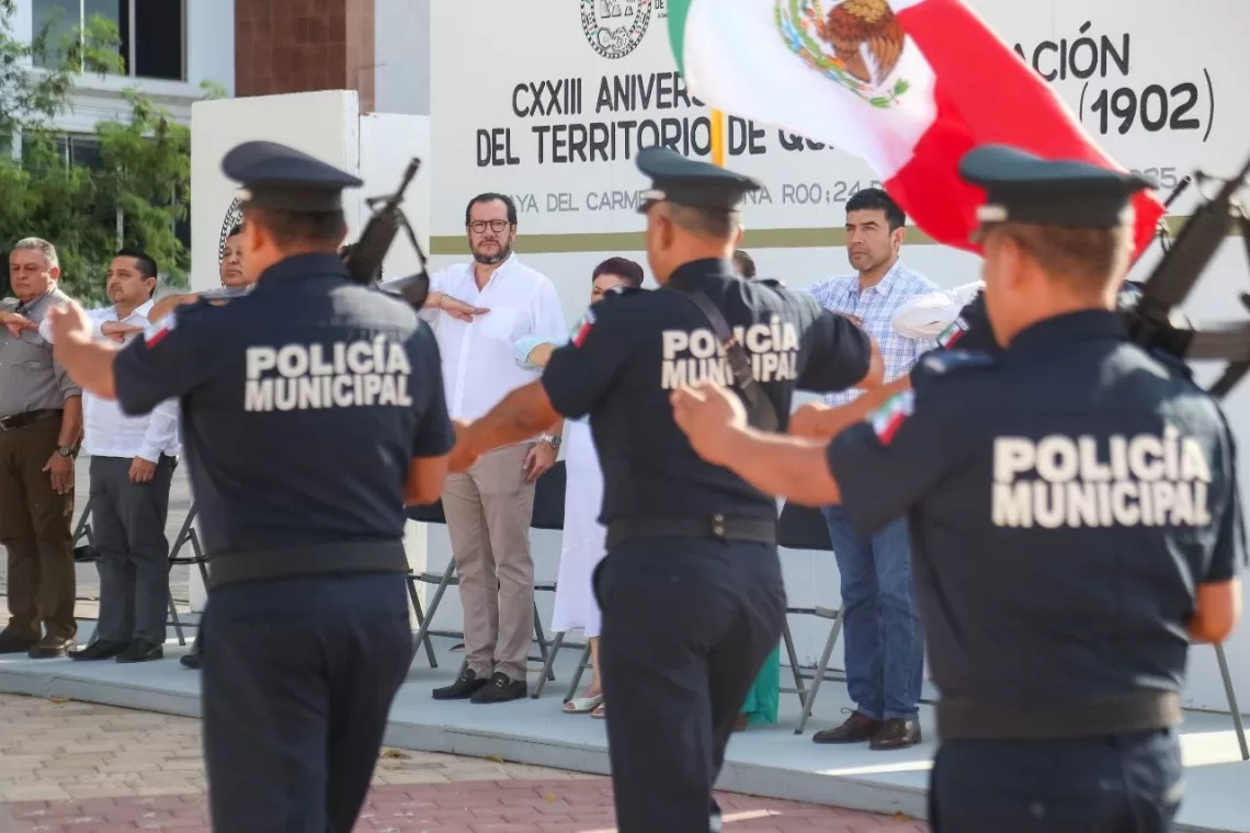 Playa del Carmen, Quintana Roo, 24 de noviembre de 2025.– El Gobierno de Playa del Carmen, que encabeza la presidenta municipal Estefanía Mercado, conmemoró hoy el 123 aniversario de la creación del Territorio Federal de Quintana Roo, con una ceremonia cívica para rendir homenaje a este acontecimiento histórico y fortalecer la identidad como quintanarroenses.
