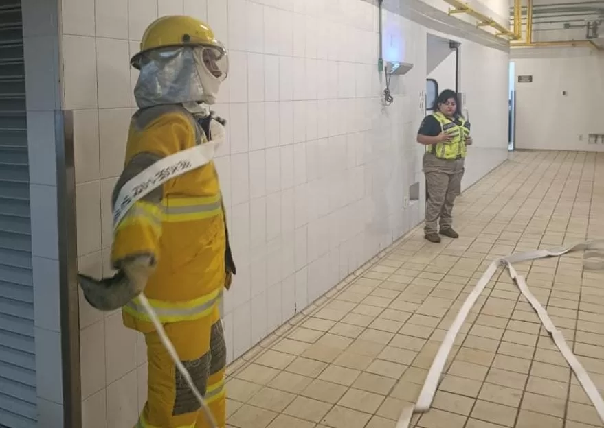 El ejercicio inició a las 10:55 horas, cuando sonó la alarma de incendio en el área de cocina central, se procedió a la evacuación de 580 colaboradores y se atendió con éxito a dos lesionados simulados: una persona con quemaduras y otra en paro respiratorio, demostrando la capacidad de respuesta y atención inmediata ante emergencias.