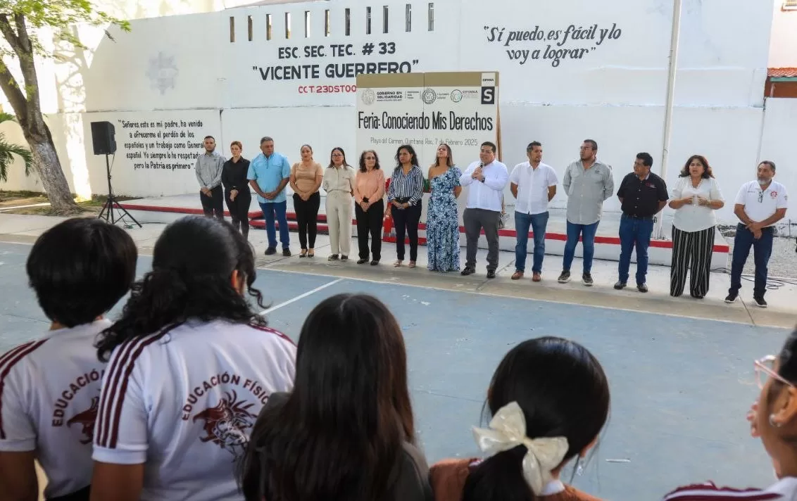 Playa del Carmen, Quintana Roo, 7 de febrero de 2025.— Con el objetivo de promover el conocimiento y ejercicio de los derechos de la niñez y adolescencia, el gobierno municipal, a través de la Secretaría Ejecutiva del Sistema de Protección Integral de Niñas, Niños y Adolescentes (SIPINNA), llevó la “Feria Conociendo Mis Derechos” a la Escuela Secundaria Técnica Número 33 “Vicente Guerrero”.