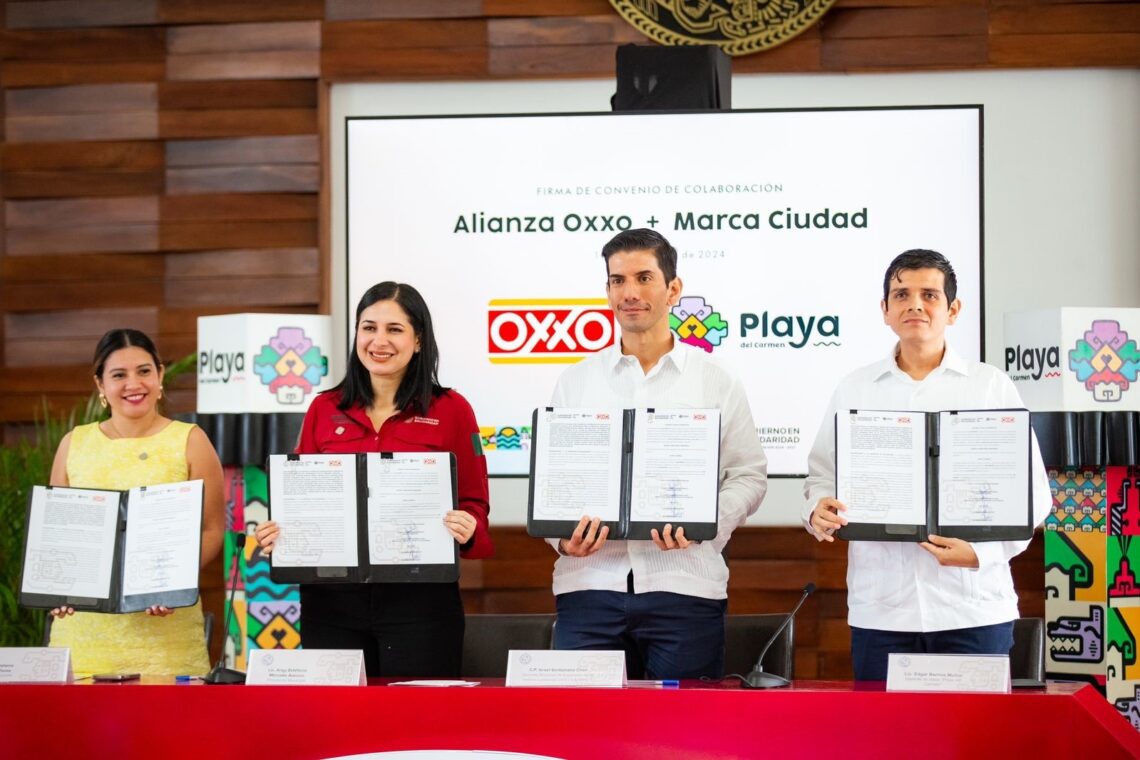 Playa del Carmen, Quintana Roo, 11 de diciembre de 2024.— La presidenta municipal Estefanía Mercado suscribió un convenio de colaboración con el Grupo de Fomento Económico Mexicano (Oxxo), a fin de promocionar la marca Ciudad Playa del Carmen como un destino turístico de clase mundial.