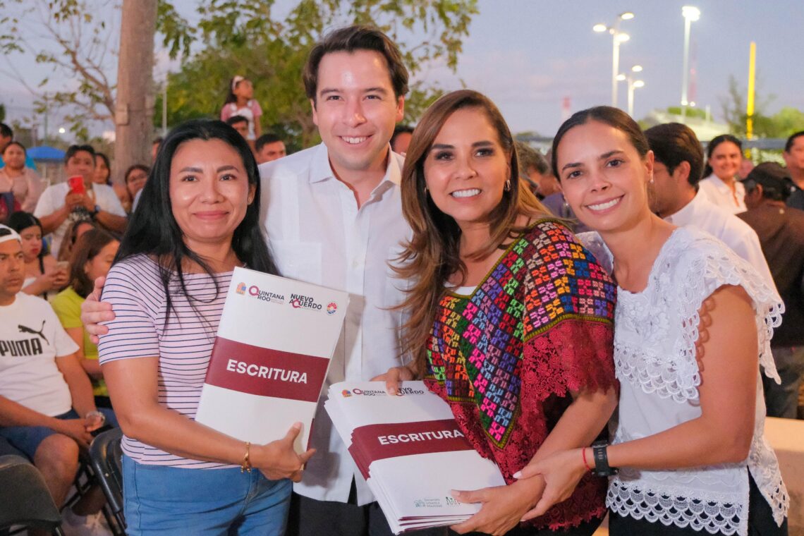 Cancún.- Después de largos años de espera, de estar abandonados e ignorados por gobiernos neoliberales, hoy la justicia social llegó a los habitantes de colonias de Benito Juárez, como Tierra y Libertad II, Tierra y libertad III, Justicia Social, Cuna Maya, Estrella del Mar, Diamante y Tucanes, con la entrega de subdivisiones y escrituras provenientes del Programa de Regularización para el Bienestar Patrimonial por la gobernadora Mara Lezama Espinosa y la presidenta Ana Paty Peralta de la Peña.