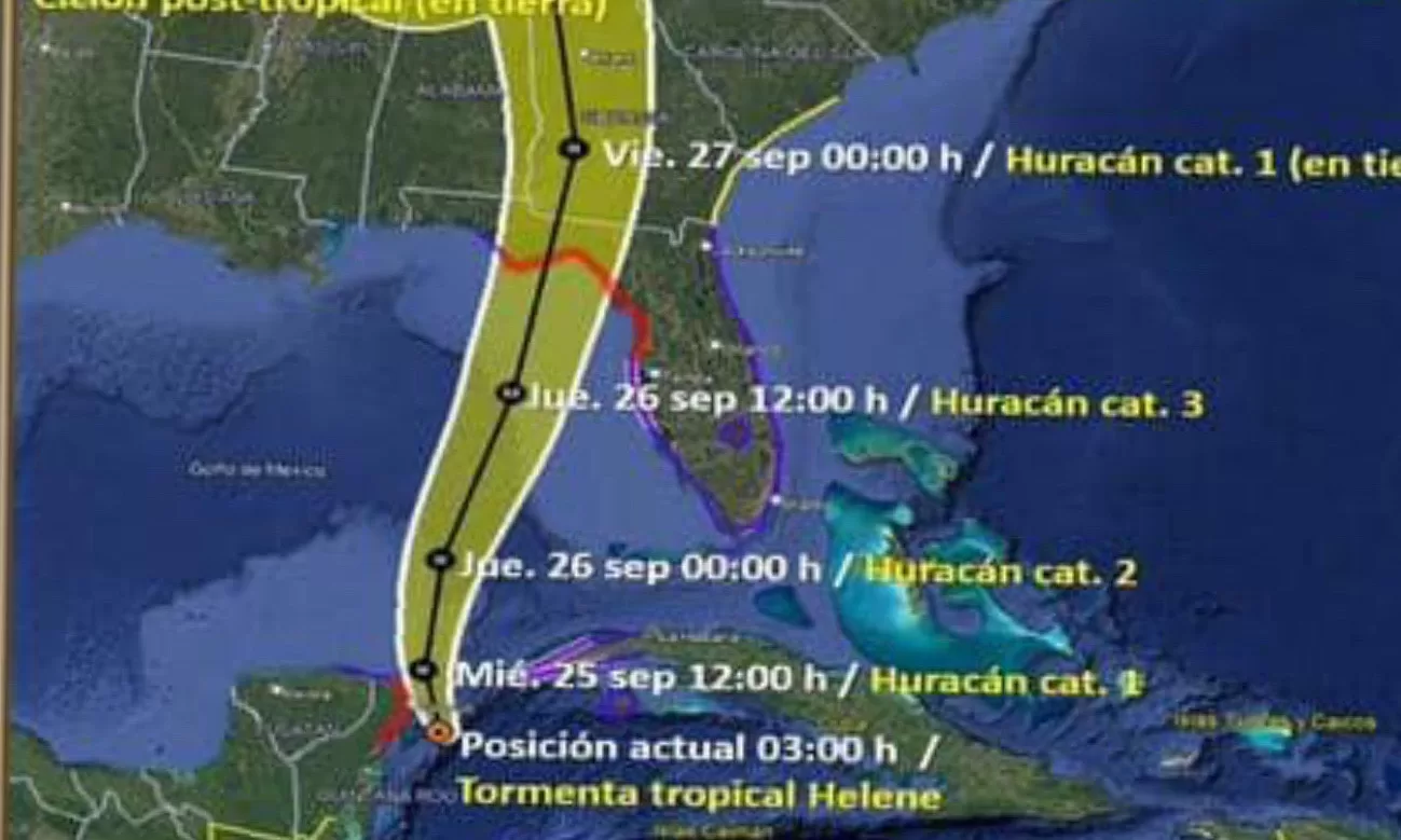 “Considerando el cono de incertidumbre, no se descarta que Helene pueda impactar sobre el norte de Quintana Roo, muy cerca de Cozumel y Cancún”, declaró la mandataria estatal, quien subrayó que la población debe mantenerse atenta ante los efectos de este fenómeno meteorológico.