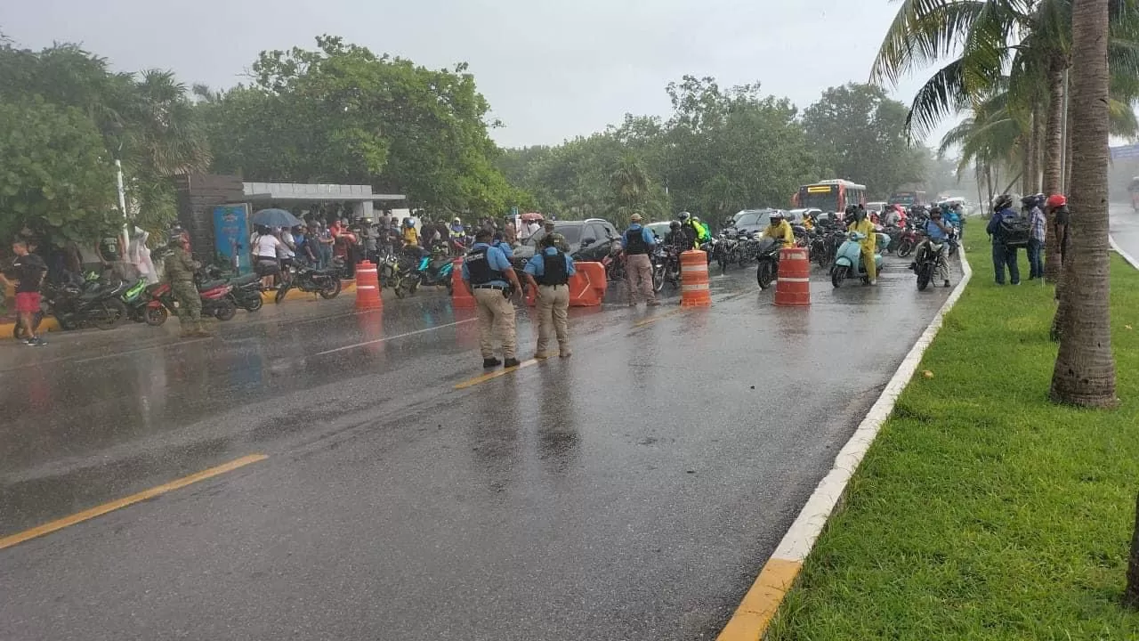 CANCÚN, 16 de octubre.— La policía de Cancún implementó un fuerte operativo este miércoles tras el reporte de un robo millonario en un hotel del bulevar Kukulcán, lo que llevó al cierre de la entrada y salida de la zona hotelera, provocando un congestionamiento vial significativo.