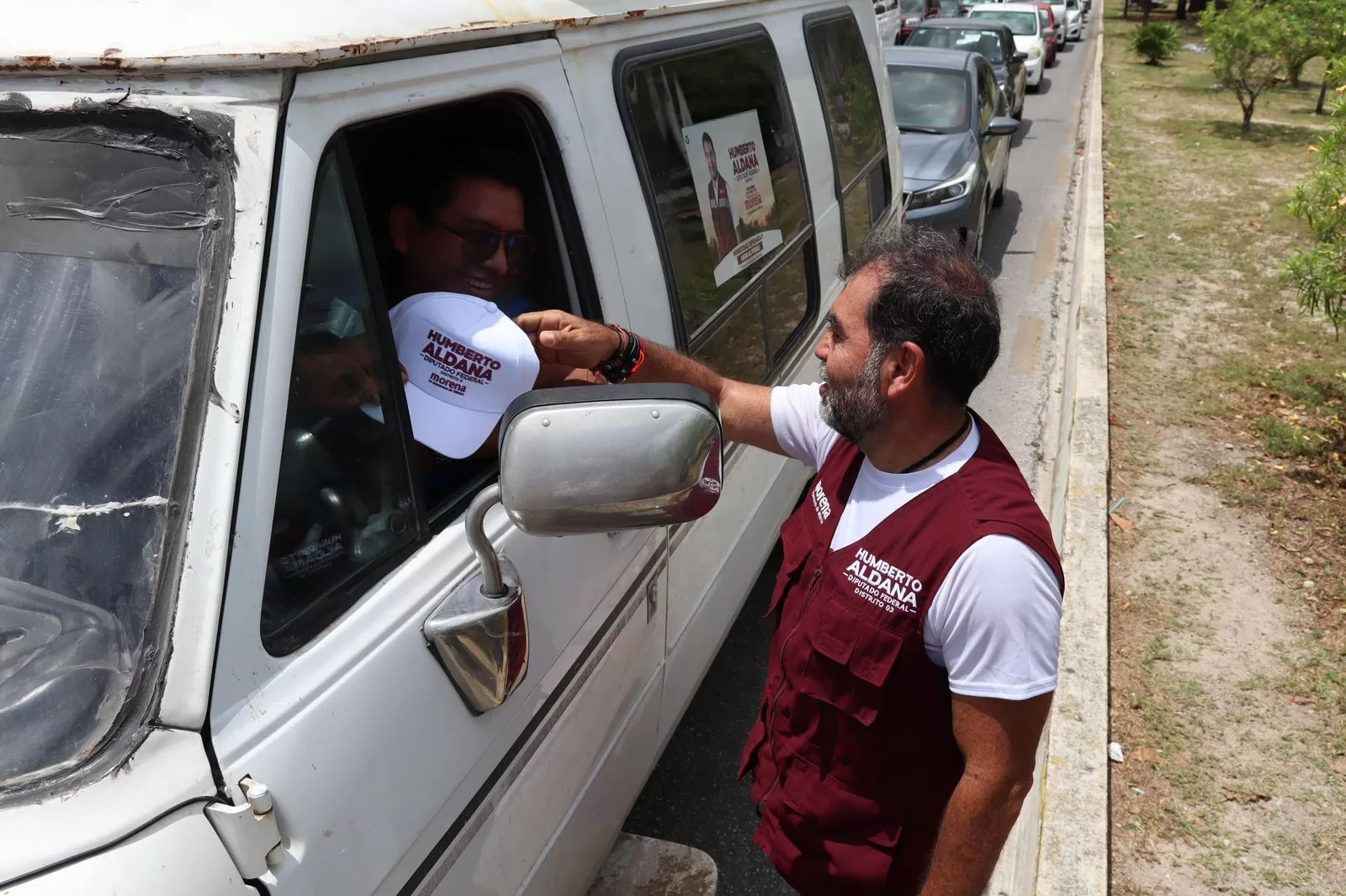 CANCÚN, 17 de abril.- Humberto Aldana Navarro, candidato de Morena a diputado federal en el distrito 03, encabezó hoy una activación en el cruce de las avenidas Uxmal y Chichén Itzá.