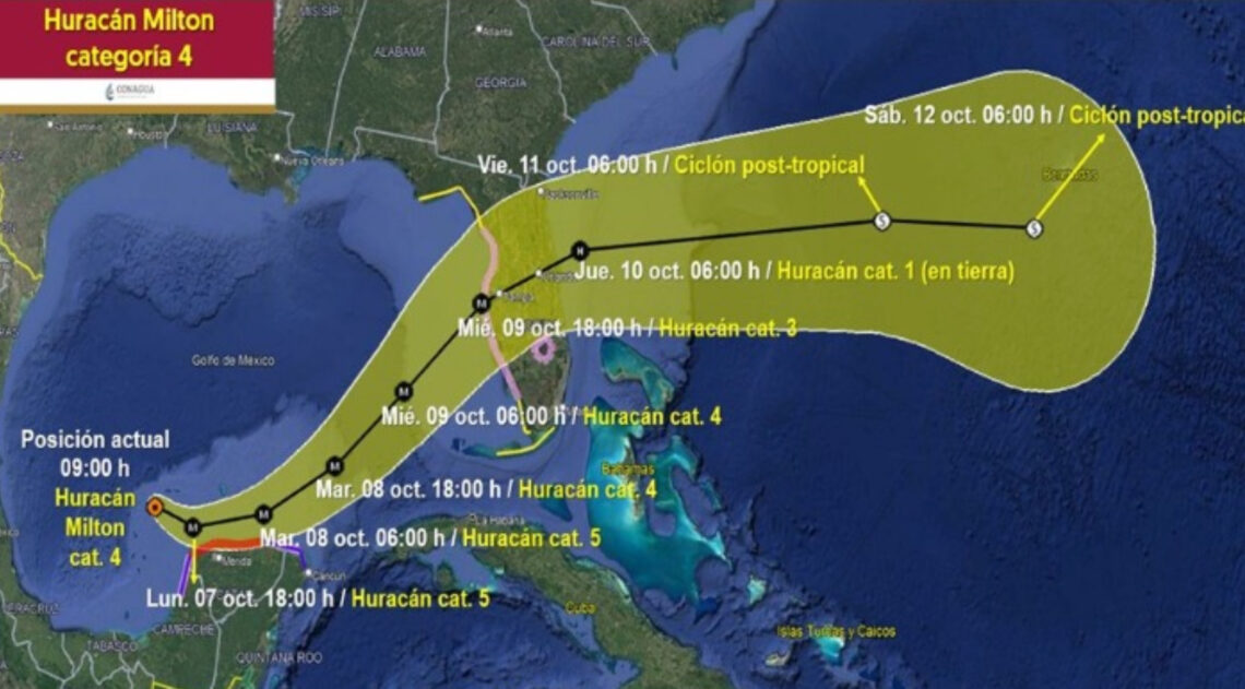 Las autoridades recomiendan estar atentos a los informes oficiales que se estarán emitiendo conforme Milton se desplace por la región.