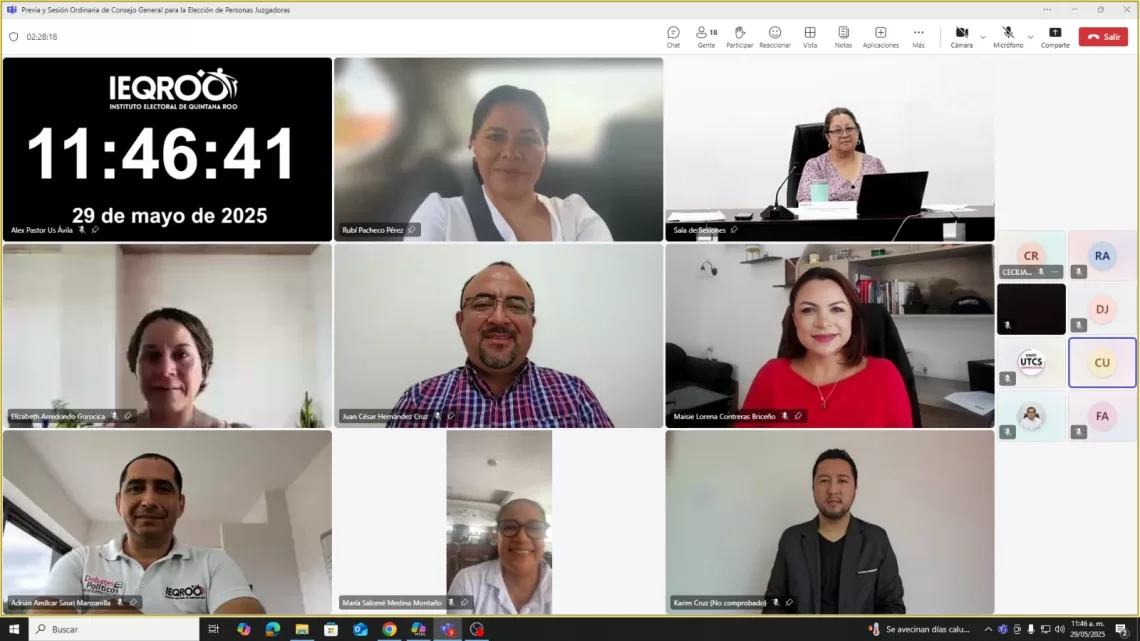 Chetumal, Quintana Roo; a 29 de mayo. – Integrantes del Consejo General para la elección de personas juzgadoras del Instituto Electoral de Quintana Roo (IEQROO), en sesión ordinaria aprobaron el procedimiento para la sumatoria de los votos adicionales de una elección local encontrados en los paquetes electorales de las elecciones para la integración del Poder Judicial de la Federación y se aprueba el modelo de acta de cómputo de votos adicionales de las elecciones del Proceso Electoral Extraordinario del Poder Judicial del Estado de Quintana Roo 2025.