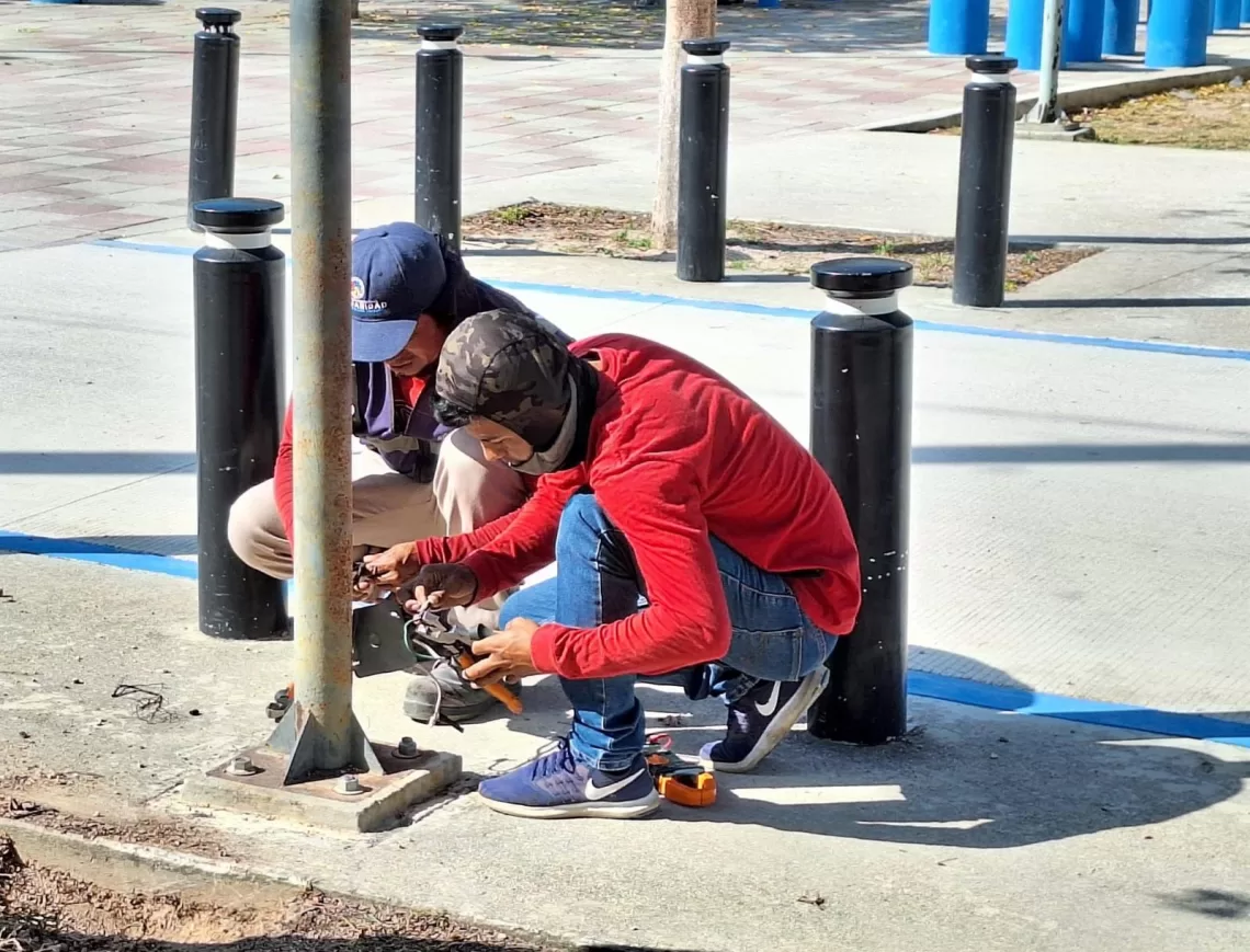 Playa del Carmen, Solidaridad, 6 de mayo 2024.- A fin de prevenir e inhibir el delito en espacios de recreación donde llegan niños, adolescentes, jóvenes y adultos, la dirección de alumbrado municipal se se dedica a cambiar luminarias fundidas y arreglar desperfectos eléctricos.