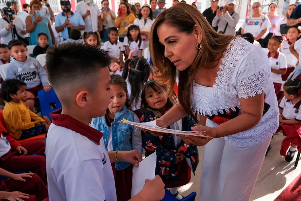 La ceremonia de inauguración, se realizó en la Primaria de Nueva Creación “Sor Juana Inés de la Cruz”, donde algunos de los infantes le regalaron dibujos a Mara Lezama.