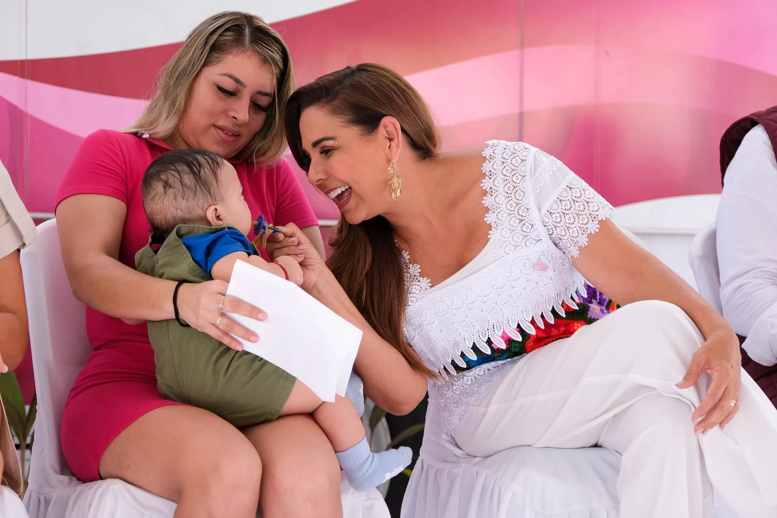 Ana Grisell Arias Rivera, una de las beneficiarias de la campaña, agradeció a la gobernadora por su compromiso con la salud de los quintanarroenses, luego de que su hijo de 8 meses recibiera la vacuna contra la influenza.