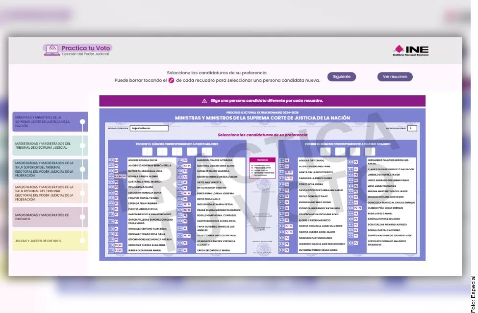 Ciudad de México.– Ante la complejidad del proceso electoral para elegir cargos en el Poder Judicial, el Instituto Nacional Electoral (INE) habilitó un micrositio denominado “Conóceles, Practica y Ubica”, donde los ciudadanos pueden familiarizarse con las seis boletas que se utilizarán el próximo 1 de junio.