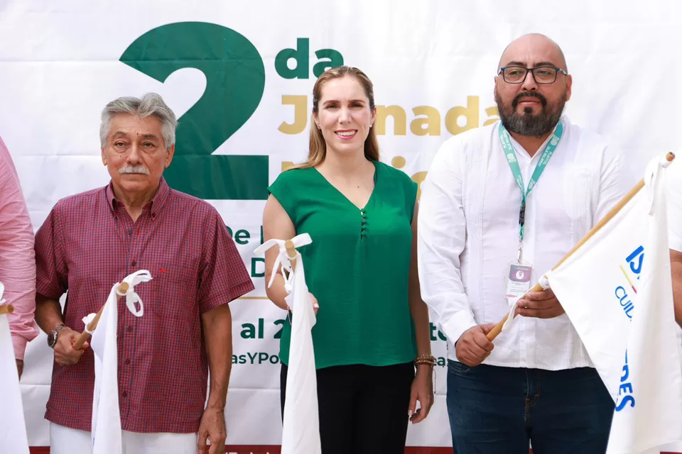 Isla Mujeres, 20 de agosto (Infoqroo).- La Presidenta Municipal de Isla Mujeres, Atenea Gómez Ricalde, dio inicio a la 2da. Jornada Nacional de Lucha Contra el Dengue en las instalaciones del Colegio de Bachilleres Plantel Ciudad Mujeres.