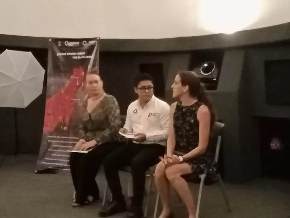 En conferencia de prensa, la Astrónoma Tania Martínez, Coordinadora de la Red de Observatorios de la Red de Planetarios de Quintana Roo del COQCYT, explicó que los eclipses solares son eventos raros y que la ubicación geográfica precisa para presenciarlos varía en función de la posición de la Tierra, la Luna y el Sol.