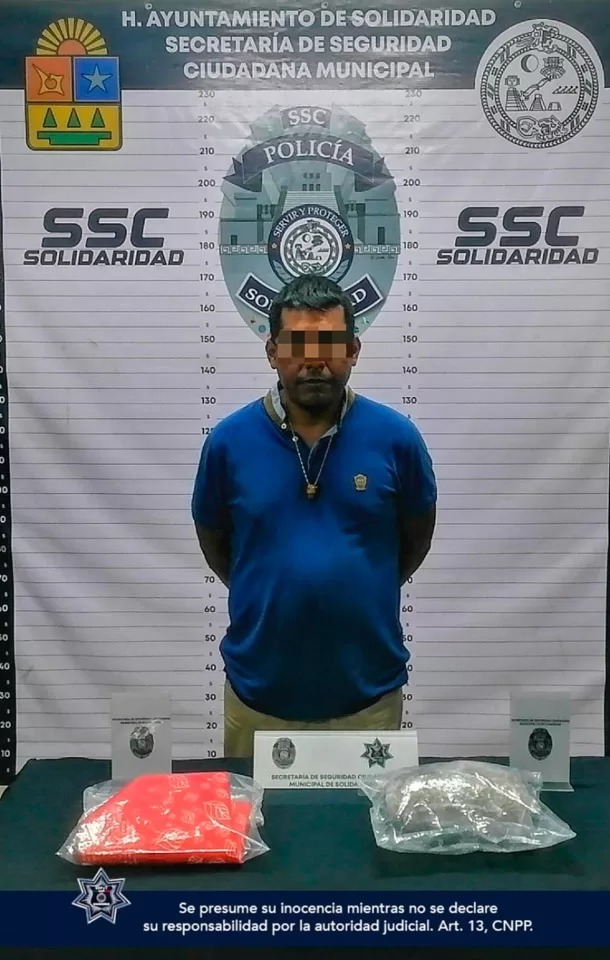 Playa del Carmen, 27 de marzo (Infoqroo).- La Policía Municipal de Solidaridad llevó a cabo la detención de un individuo en posesión de posibles narcóticos mientras intentaba ingresar al municipio como pasajero en un vehículo del servicio público.