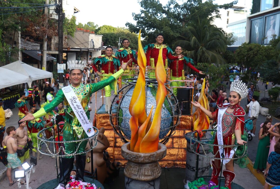 El desfile inició en la avenida Constituyentes con Quinta con el carro alegórico de Meztli y Joel, los soberanos del Carnaval de Playa del Carmen 2025, quienes bailaron, saludaron y repartieron souvenirs a locales y a visitantes de todas partes del mundo que, con sus móviles, grabaron detalles inolvidables de su estancia en este maravilloso destino turístico del Caribe Mexicano.