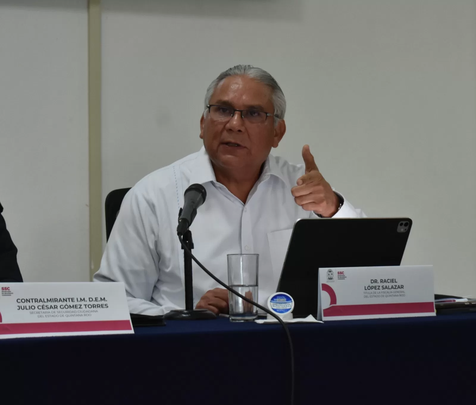 En la conferencia estuvieron presentes también autoridades estatales y militares, entre ellas Cristina Torres Gómez, Secretaria de Gobierno; el contralmirante Julio César Gómez Torres, titular de la SSC; el general Fidel Mondragón Rivero, comandante de la 34ª Zona Militar; y el vicealmirante Marco Antonio Muñoz Hernández, comandante de la XI Zona Naval.