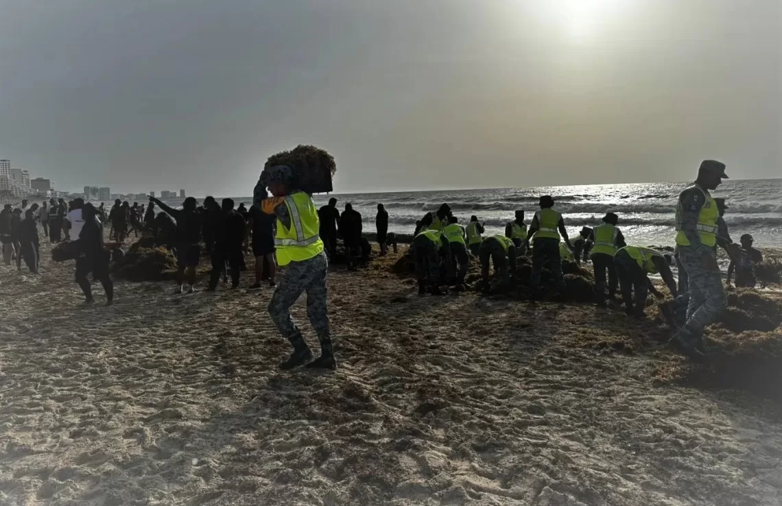 Hay que reconocer el trabajo que realizan elementos de la Secretaría de Marina (Semar), pero debe evitarse que el problema llegue a la playa, porque ahí con la exposición del sol se vuelve tóxico; se convierte en un residuo, un residuo muy tóxico, por cierto.
