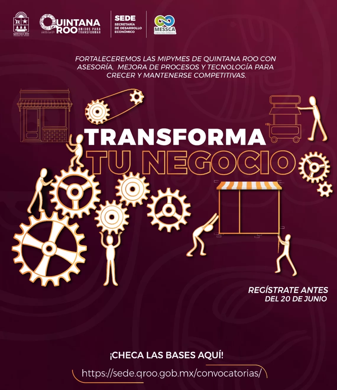 Chetumal.- Para impulsar la competitividad empresarial y fortalecer el tejido económico, el Gobierno del Estado a través de la Secretaría de Desarrollo Económico (SEDE), emitió la convocatoria “TRANSFORMA TU NEGOCIO”, dirigida a personas físicas propietarias de Micro, Pequeñas y Medianas Empresas (MiPyMes) establecidas en la entidad.