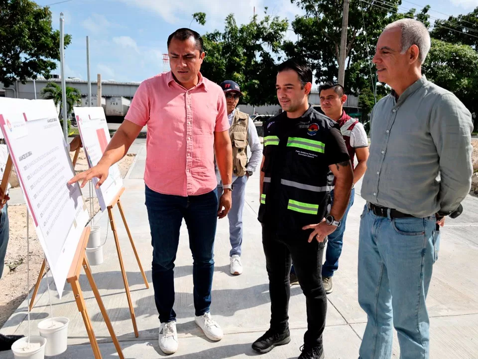 Cancún, 23 de enero (Infoqroo).- Un avance del 86 por ciento registran la rehabilitación de las dos canchas deportivas de la Supermanzana 21, según se indicó tras un recorrido de supervisión a cargo del secretario Ayuntamiento, Pablo Gutiérrez Fernández, acompañado del secretario municipal de Obras Públicas y Servicios, Salvador Diego Alarcón y el síndico Miguel Ángel Zenteno Cortés.