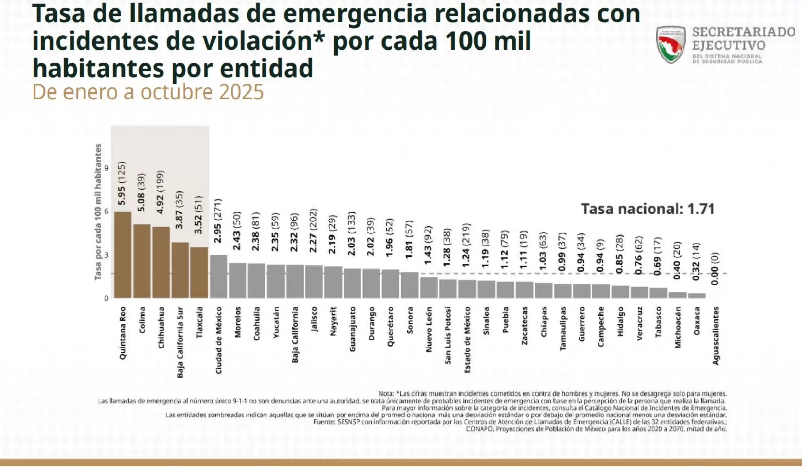 Digo esto porque el Secretariado Ejecutivo del Sistema Nacional de Seguridad Pública ya publicó las cifras mensuales correspondientes a la incidencia delictiva de octubre, donde Quintana Roo ocupa lugares alarmantes en relación con cada 100 mil habitantes, lo que manifiesta que aún hay pendientes con este sector de la sociedad.