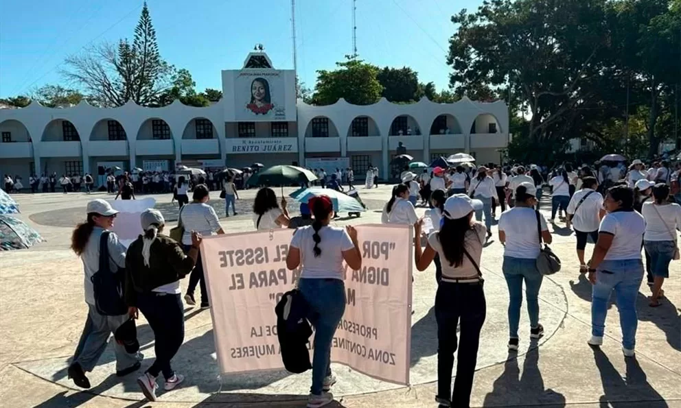 En Cancún, cientos de docentes marcharon hasta el Palacio Municipal, mientras que en Chetumal se movilizaron desde la Secretaría de Educación de Quintana Roo (SEQ) hacia el Congreso estatal, portando pancartas con mensajes como “En contra de la ley del ISSSTE” y “Un docente que lucha también educa”. En Isla Mujeres, se realizaron pintas y se colgaron mantas con consignas en las escuelas, y en Cozumel se unieron trabajadores de hospitales públicos.