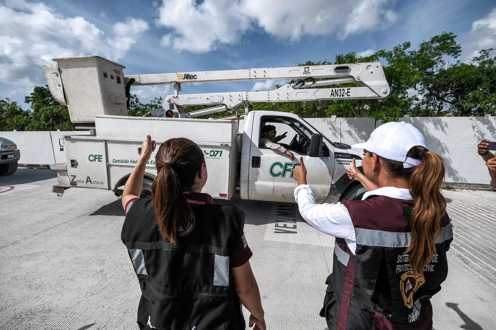 Mara Lezama recorre con brigadas de CFE trabajos de restablecimiento de energía eléctrica por el paso de “Beryl” en Cozumel