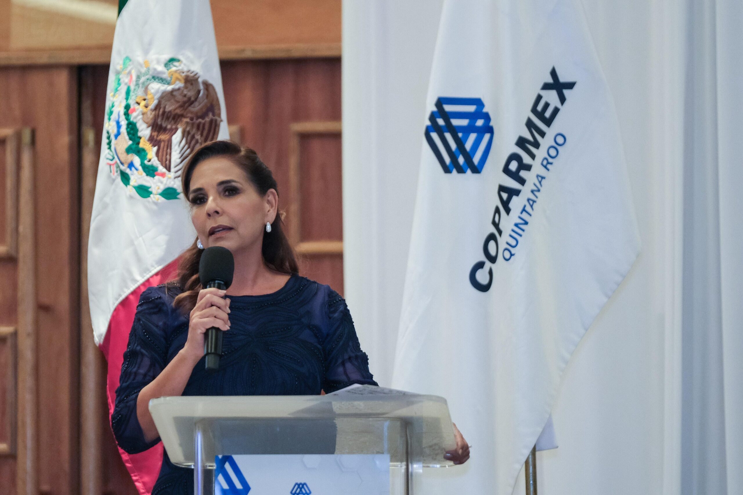 Cancún.- La gobernadora Mara Lezama Espinosa asistió a la Toma de Compromiso del Consejo Directivo 2025-2027 Coparmex Quintana Roo que presidirá María Jovita Portillo Navarro, con la presencia del presidente nacional de la Confederación Patronal de la República Mexicana, Juan José Sierra Álvarez.
