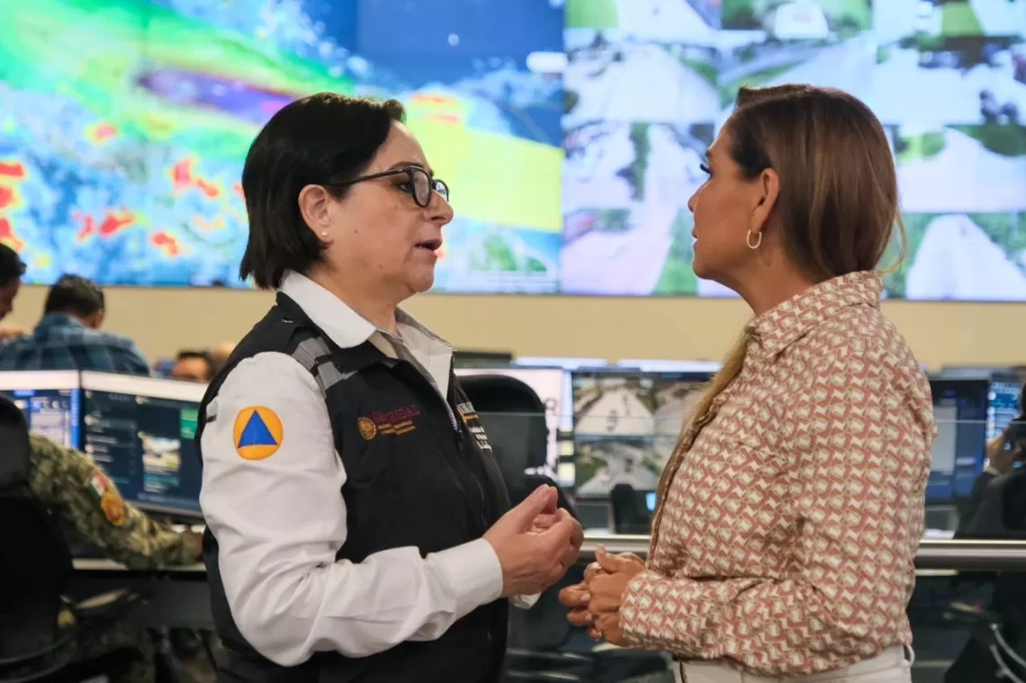 CANCÚN, 2 de julio.— Para anticipar y coordinar acciones preventivas frente a los fenómenos meteorológicos, en particular el huracán “Beryl”, la gobernadora Mara Lezama Espinosa se reunió con la coordinadora nacional de Protección Civil Laura Velázquez Alzúa.
