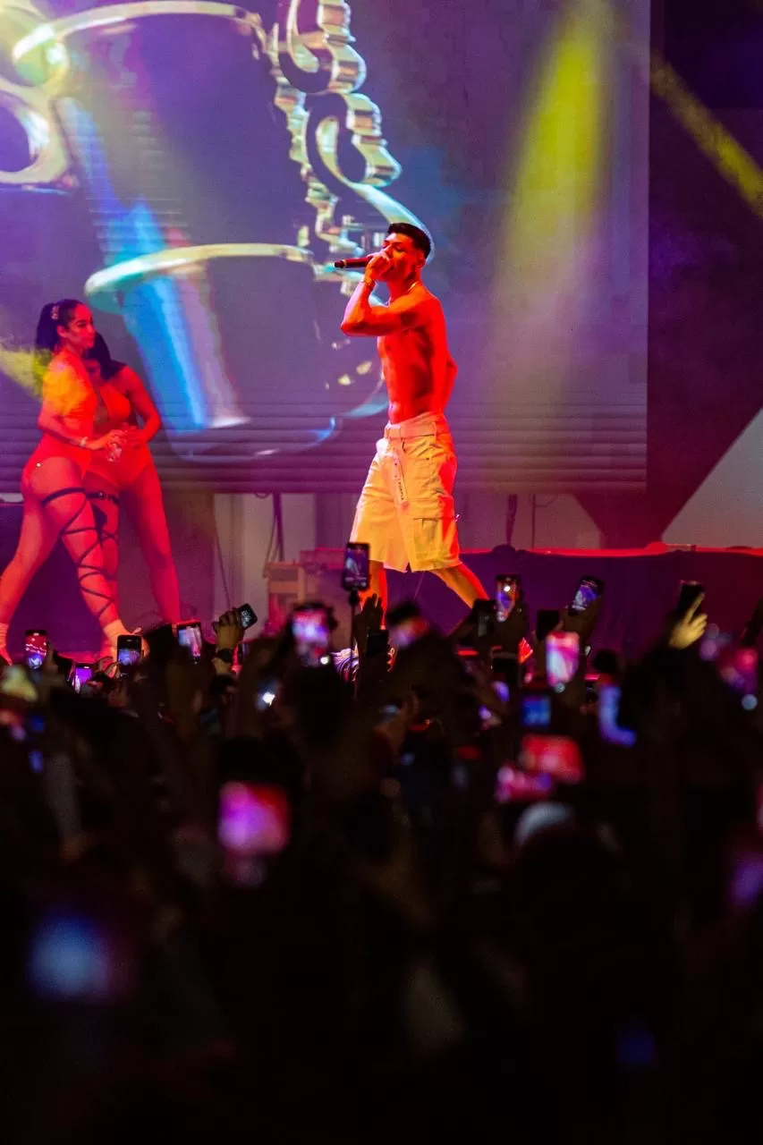 “Pégate a baile”, “Te vas” y “Nena Moxita” formaron parte del repertorio que el reguetonero cantó a su público, con el que interactúo en todo momento, para ganarse más aplausos y gritos de euforia.