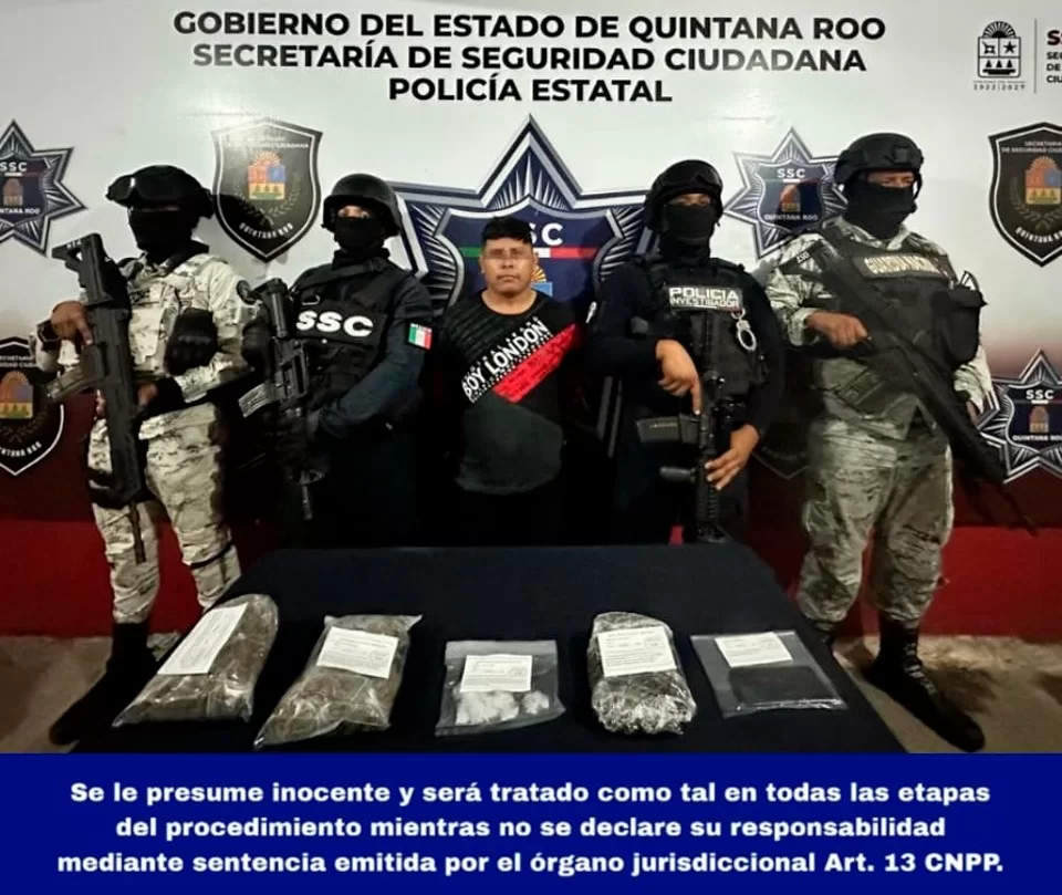 Cancún, 20 de febrero (Infoqroo).- En trabajo coordinado entre la Secretaría de Seguridad Ciudadana y de la Guardia Nacional, se logró la detención de Jorge “N”, presunto implicado en delitos Contra la Salud.