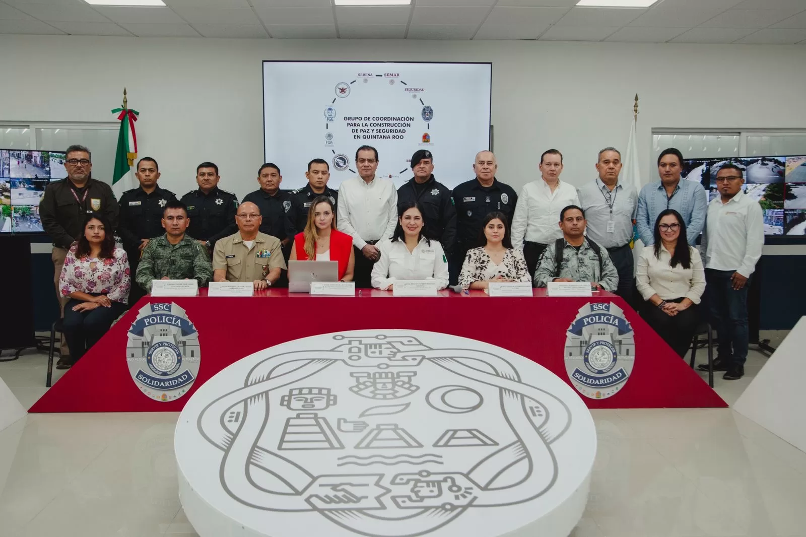 A la reunión también asistieron Estefanía Caro Farah, secretaria Técnica estatal en Quintana Roo; Karen Alejandra Román Flores, secretaria técnica de la Coordinación Regional para la Construcción de Paz y Seguridad de Solidaridad; el vicealmirante C. G D. E. M. Jesús Pineda Flores, comandante de la Décimo Quinta Zona Naval; el teniente de Infantería Francisco Ramírez Pascual, en representación del 64 Batallón de Infantería, y el segundo subinspector Carlos Arturo Jesús Jiménez, comandante de la 375/a compañía de la Guardia Nacional, así como representantes de instituciones de seguridad de los tres órdenes de gobierno.