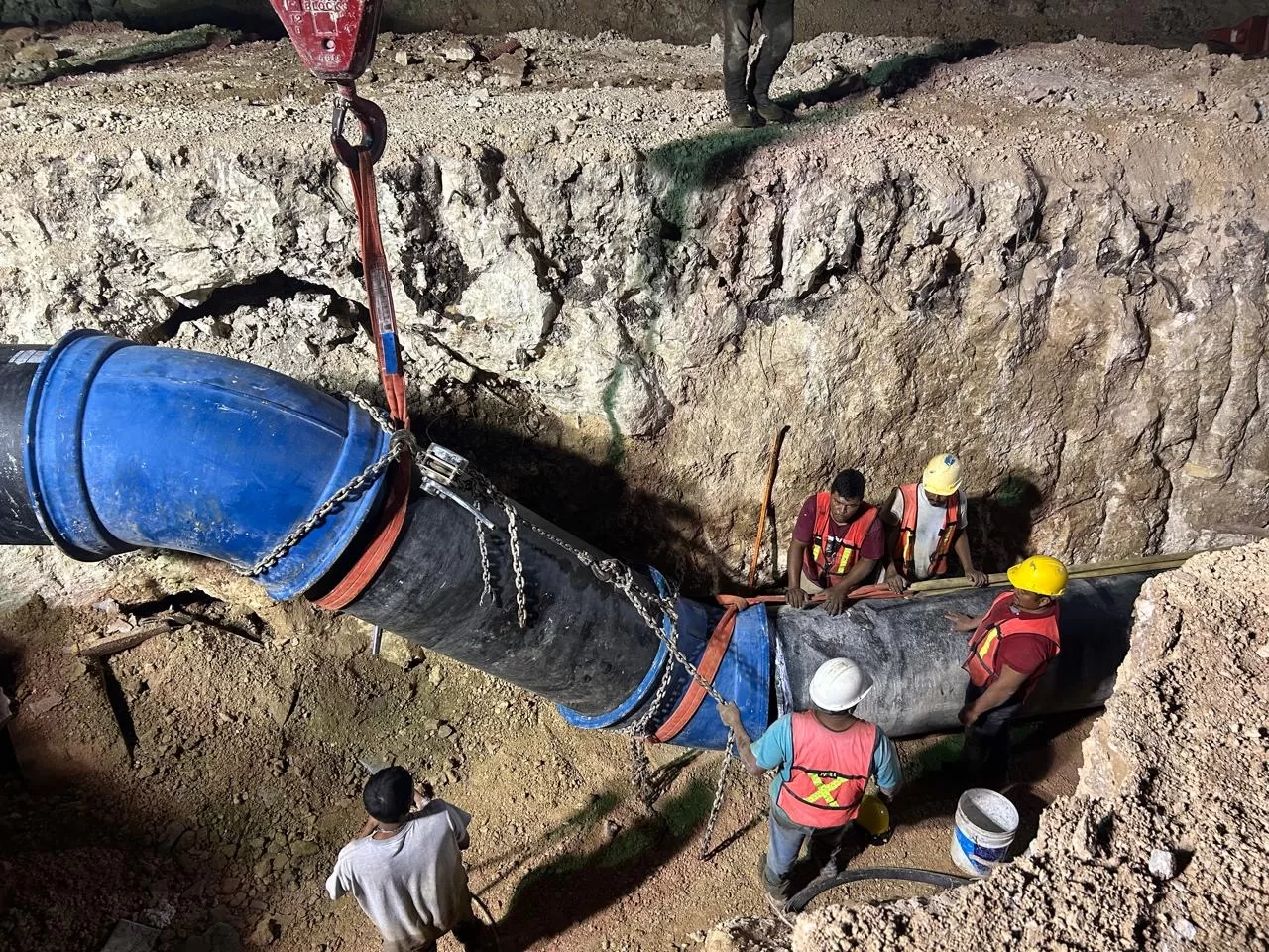 Posteriormente, a las 12:00 horas, unos metros adelante de la fuga previamente reparada, Aguakan encontró una nueva fuga de agua potable en la interconexión con el siguiente tramo de la tubería de 30 pulgadas, derivada de la primera rotura ocasionada por ICA.