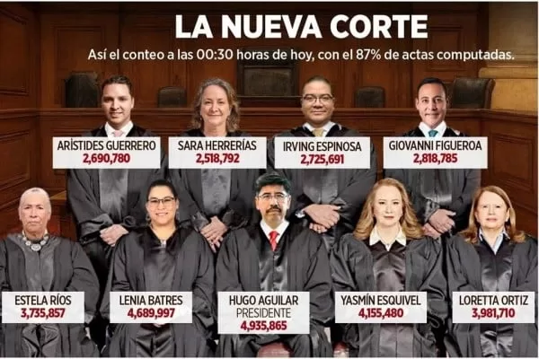 Con el 87% de las actas computadas por el Instituto Nacional Electoral (INE) a las 00:30 horas de este lunes, los virtuales ganadores son abogados y abogadas afines al proyecto político de la Cuarta Transformación, respaldados por el ex presidente Andrés Manuel López Obrador y la actual mandataria, Claudia Sheinbaum. La campaña en favor de estos perfiles se vio impulsada a través de volantes, acordeones y mensajes difundidos por simpatizantes de Morena y sus aliados.