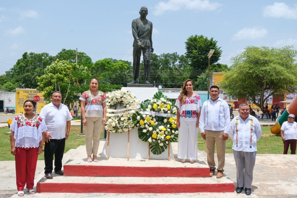 Previo a esta ceremonia, la titular del Ejecutivo estuvo una demostración gastronómica del platillo Tok Seel (frijoles ibes cocidos con piedras calientes y pepita de calabaza molida), recorrió una muestra artesanal en donde saludó a las productoras y presidió una ofrenda floral a los héroes y heroínas de la Guerra Social Maya, en el monumento a Jacinto Pat.