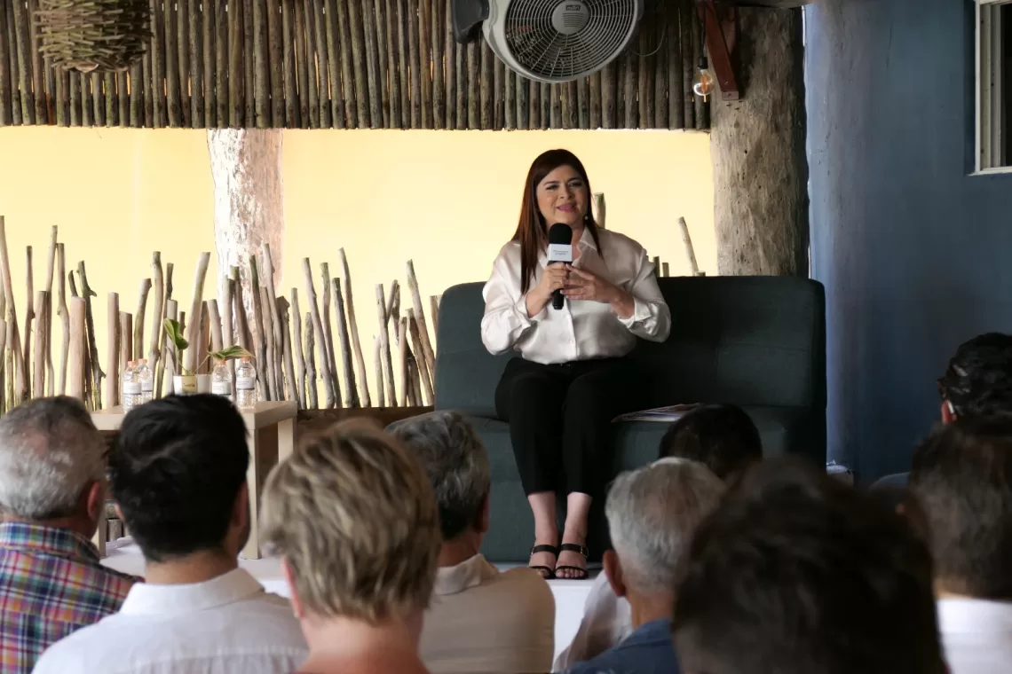 En el día 3 de campaña, ante 56 mujeres y hombres dueños de empresas de gastronomía, comercio, hotelería y desarrollo inmobiliario convocados por Empresarios Quintana Roo que preside Sergio León, la candidata de la alianza PRI-PAN a la Presidencia municipal de Puerto Morelos, subrayó que hoy, de 31 mil 500 portomorelenses, 44.67 por ciento se siente inseguro; “la gente vive con miedo y eso nos lastima profundamente, porque no debe normalizarse el temor, pero también es señal que nuestras propuestas para corregir el rumbo en el municipio son aceptadas, porque Puerto Morelos sí quiere cambiar”, agregó en el foro al que acudieron también Marcy Bezaleel Pacheco, titular del colectivo Cocineros Quintana Roo y Armando Alvarado, representante municipal de la Cámara Nacional de la Industria Restaurantera y Alimentos Condimentados (Canirac)