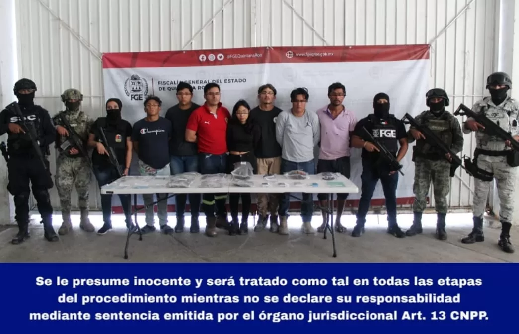 Además de una libreta de color verde con diversas anotaciones, un billete color anaranjado con denominación de 100 pesos y otro de 200 pesos moneda nacional. Los detenidos fueron identificados como Gamaliel “N”, Melvin “N”, Alejandra “N”, Israel “N”, Vicente “N”, Elizenda “N” y Eber “N”, y fueron puestos a disposición de la Fiscalía General del Estado para las investigaciones correspondientes.