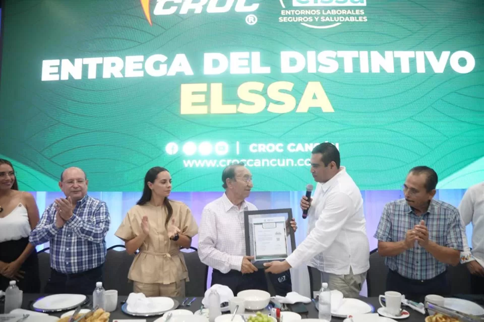 Cancún, 2 de agosto (Infoqroo).- El Instituto Mexicano del Seguro Social (IMSS) en Quintana Roo firmó la carta de adhesión y entrega del Distintivo del Programa Entornos Laborales Seguros y Saludables (ELSSA) a la Confederación Revolucionaria de Obreros y Campesinos (CROC).
