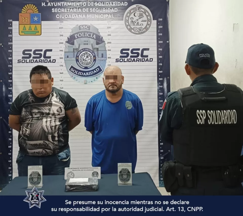 Playa del Carmen, 10 de agosto (Infoqroo).- En atención a una denuncia ciudadana, la Policía Municipal de Solidaridad aseguró a dos personas y un paquete con posible cocaína.